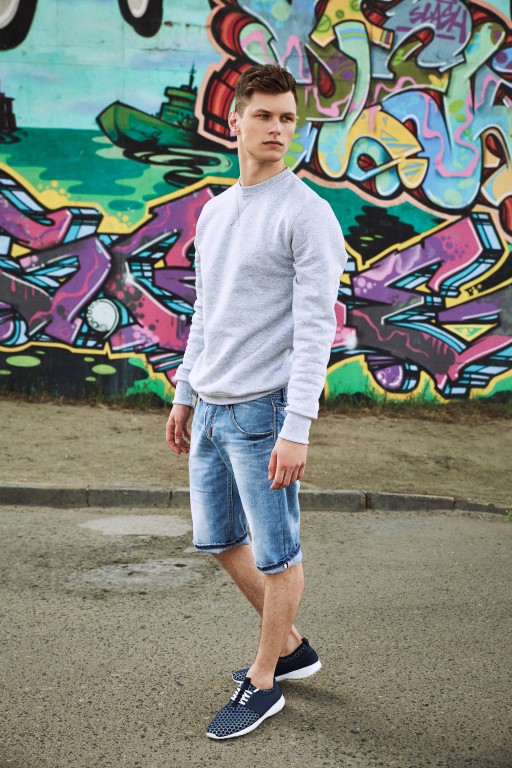 Denim shorts also show off with a shirt with a button-down or stand-up collar. They look amazing with a polo shirt, a comfy T-shirt or even a sweatshirt. They can be matched with a T-shirt, a shirt or a hoodie. Such shorts look amazing within a classic styling with a plain T-shirt, a tank top, a V-neck T-shirt, but also with more expressive colours and overprints. It’s worth to appreciate longline oversize hoodie and match them with shorts and T-shirts.