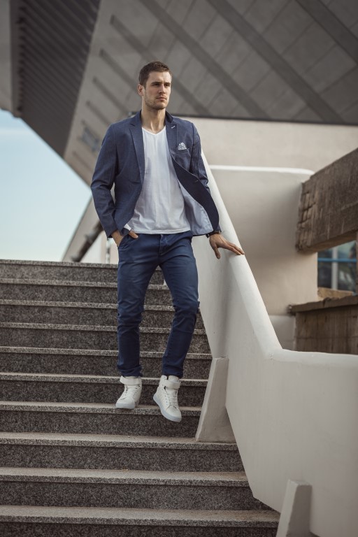The number of smart-casual style is getting bigger and bigger. Odd sets are becoming more and more popular and chino trousers are now a serious rival to jeans. However, the star among elegant and comfy stylings is a men's blazer. This is the element of clothing that underlines, slenders and adds chic to the silhouette. The most universal ones come in the shades of grey and navy blue. They are suitable for work or on a date. If you look something for every day, try going with casual blazers. The ones without a lining with eye-catching lapels and decorative buttons on the sleeves nicely add lightness to the silhouette. Depending on the mood and situation, a casual blazer will work perfectly with chino trousers or a pair of jeans. If you go out with a girl to a cafe, put on a casual checked shirt or a plain one with a highlighted fastening under the blazer. In a restaurant or on a party, wear a comfy T-shirt instead of a shirt. Alternatively, you can go with a plain V-neck or crew neck shirt. Or boost up your look with a printed T-shirt.