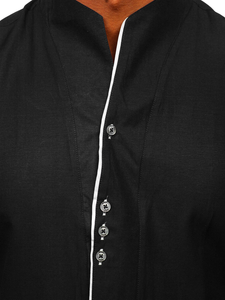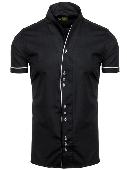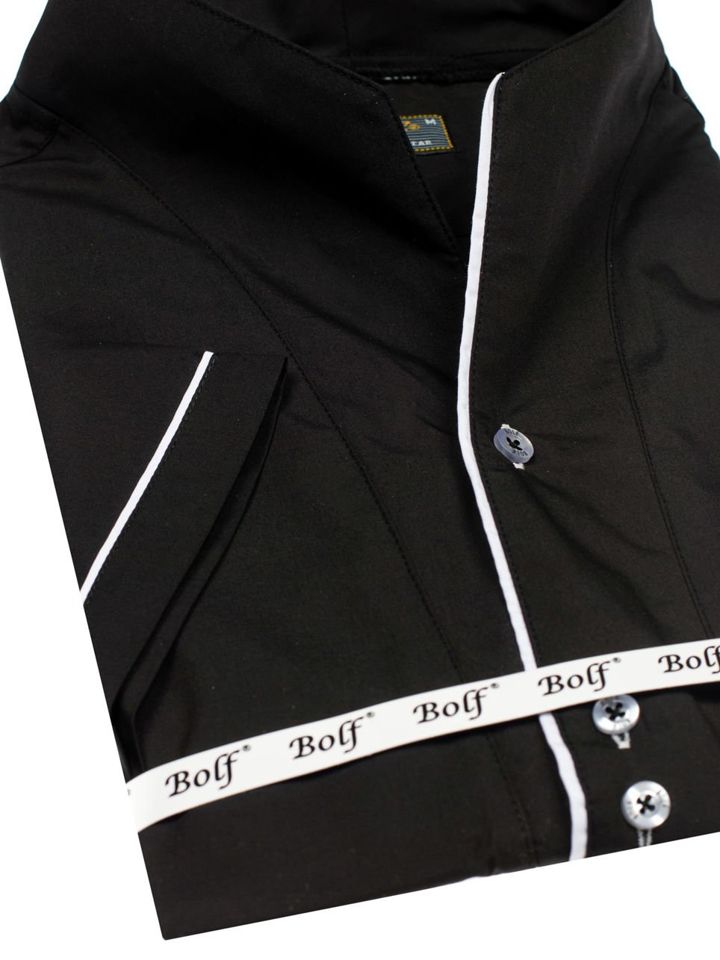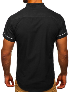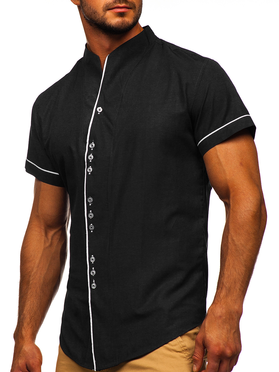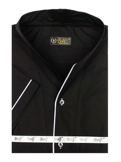 Comfortable black men's short sleeve shirt from the Bolf collection. Instead of the classic collar, they have a stand-up collar, emphasizing the male figure very well. The presented slim fit shirt fits perfectly with casual summer outfits. Feel free to wear it with jeans, chinos or shorts.