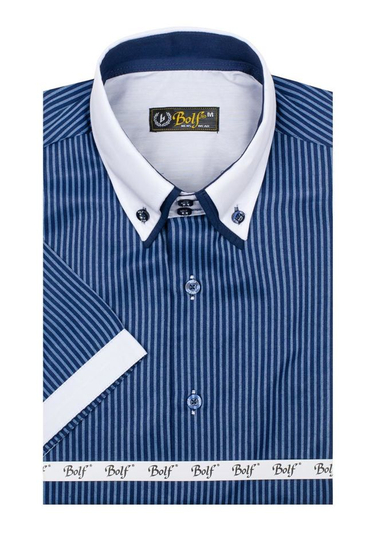 Customer feedback Men's Striped Short Sleeve Shirt Navy Blue Bolf 1808