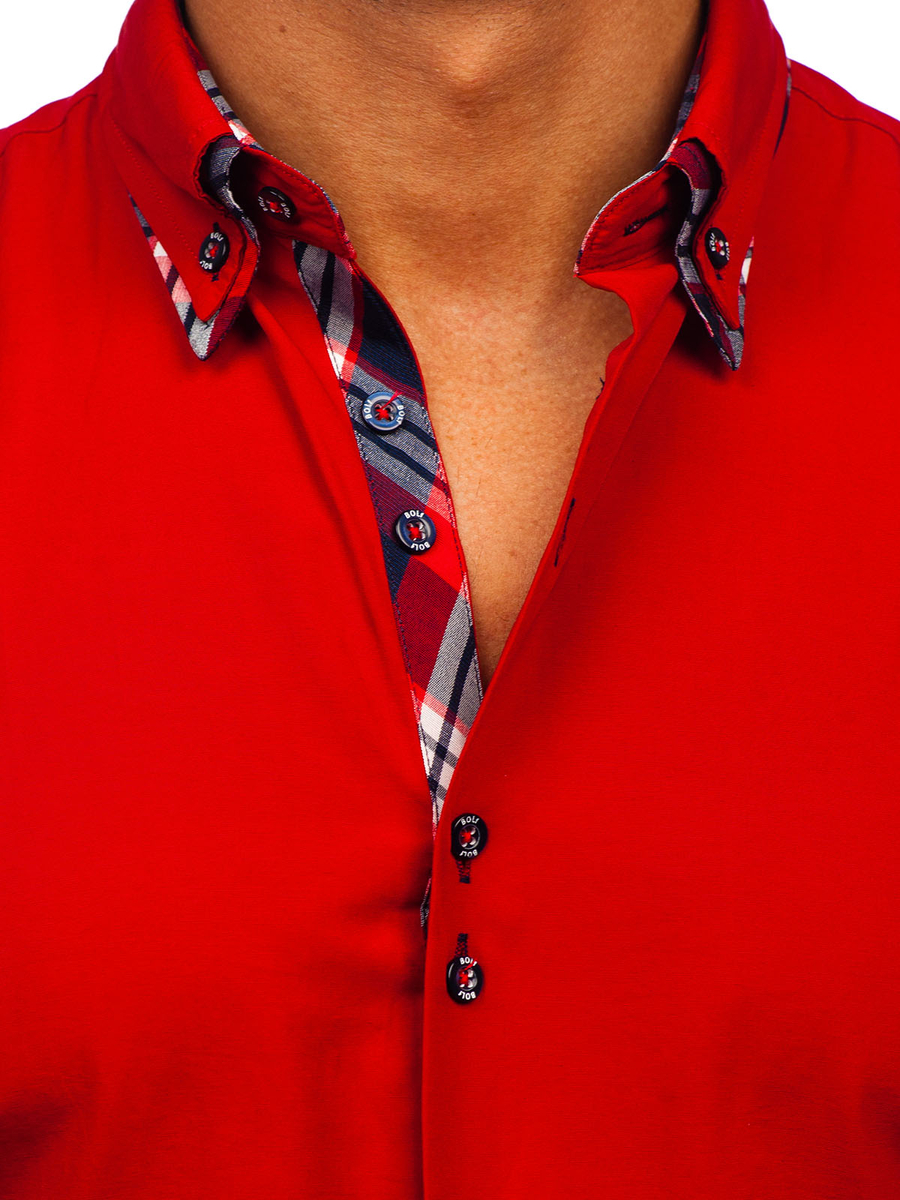 Casual red long sleeve shirt from the Bolf collection. It looks great under a blazer. Match it with formal outfits. The presented model is slim fit and provides great comfort. The checkered inserts are really eye-catching.