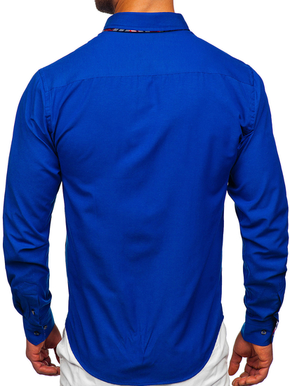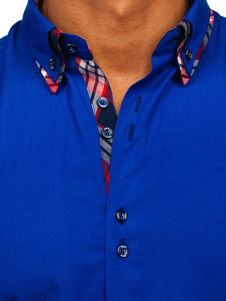Casual royal blue long sleeve shirt from the Bolf collection. It looks great under a blazer. Match it with formal outfits. The presented model is slim fit and provides great comfort. The checkered inserts are really eye-catching.