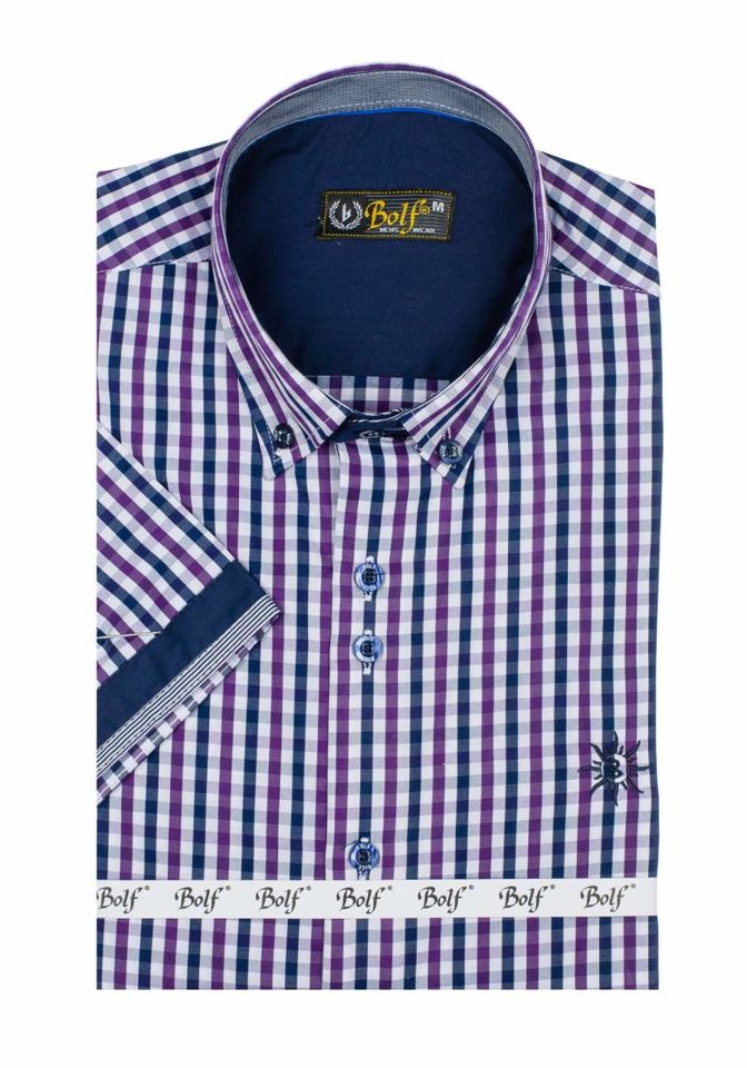 Is check your favourite design? Do you like to stand out but fashion experiments is too much? Great violet short sleeve shirt from the Bolf collection. It's perfect to summer stylings. The presented model is slim fit and fits to linen trousers, shorts or jeans.
