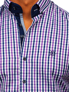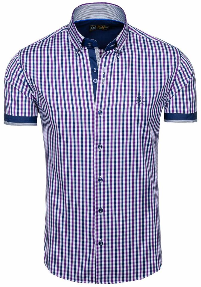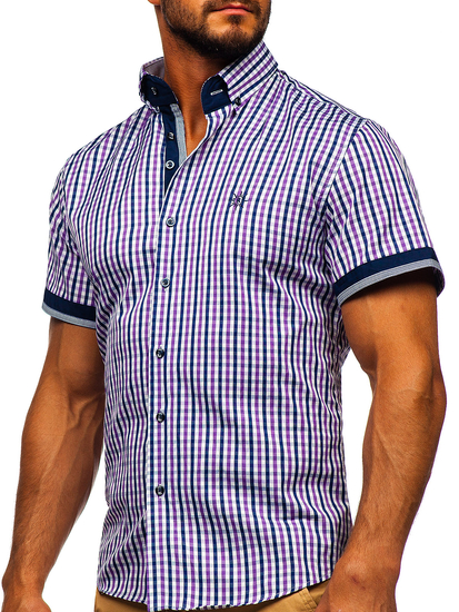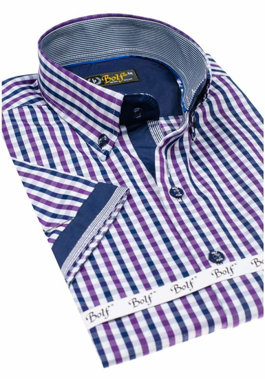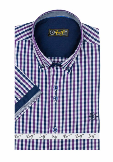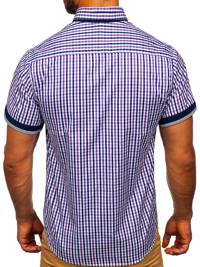 Customer feedback Men's Short Sleeve Checkered Shirt Violet Bolf 4510
