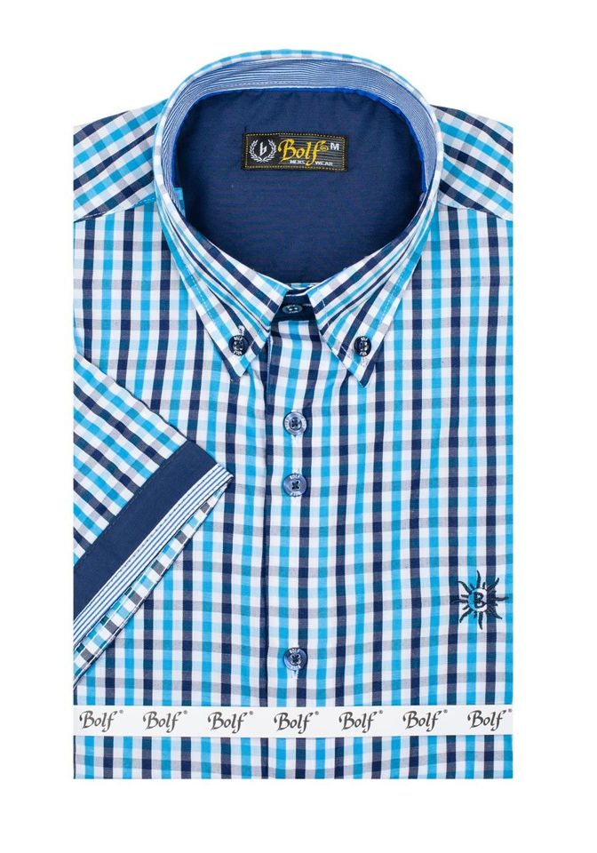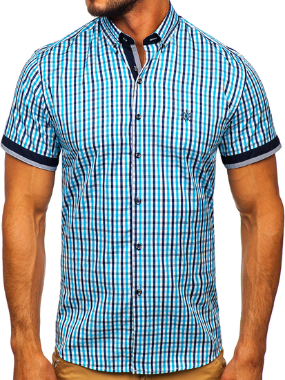 Customer feedback Men's Short Sleeve Checkered Shirt Turquoise Bolf 4510