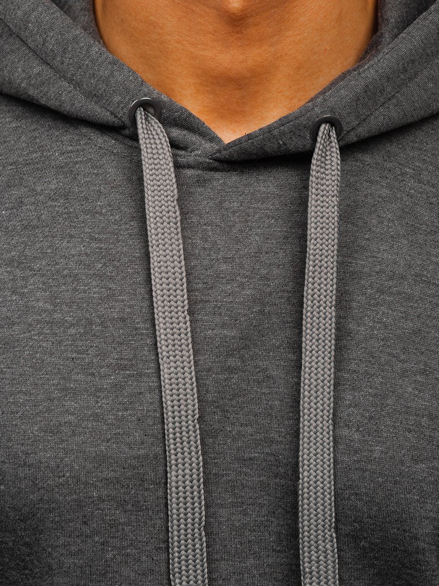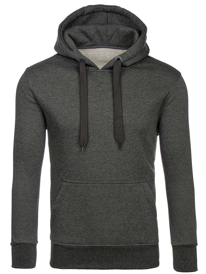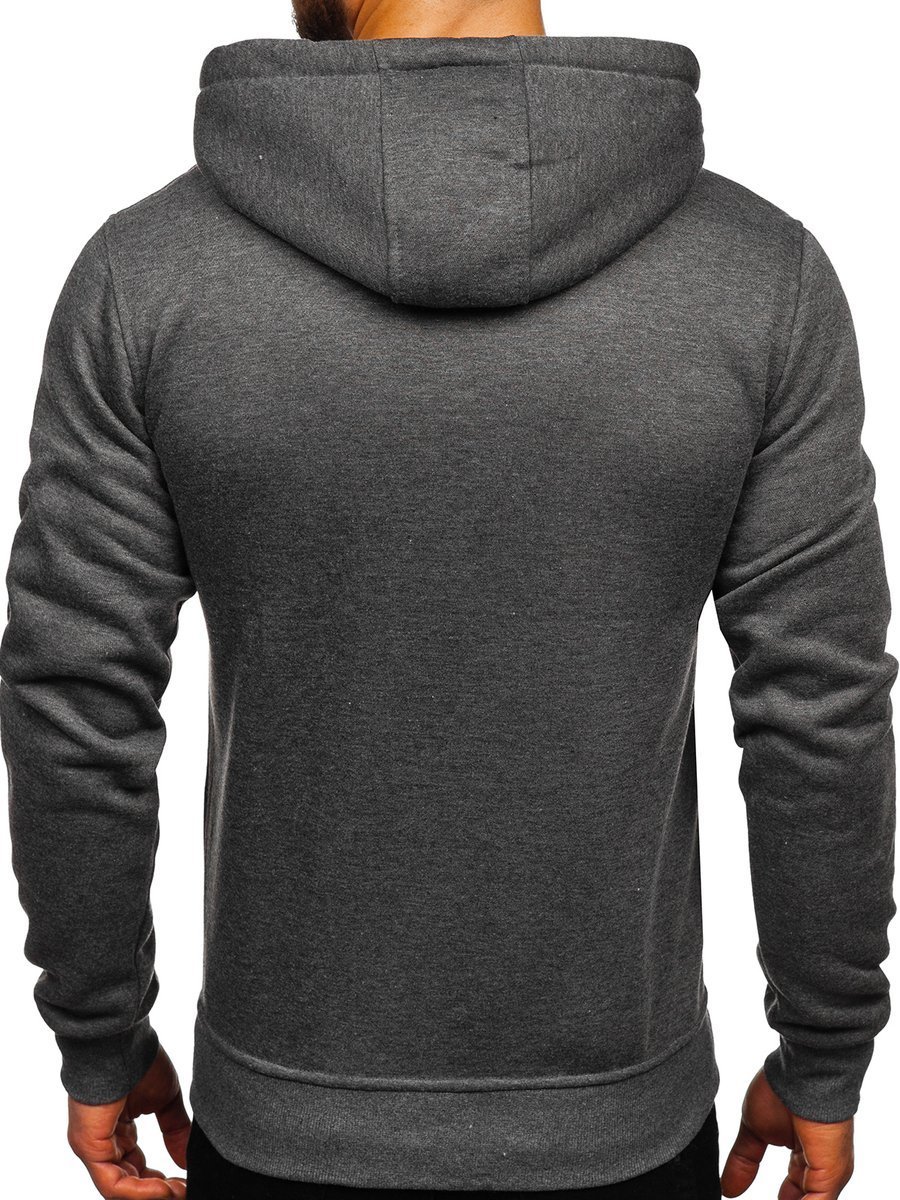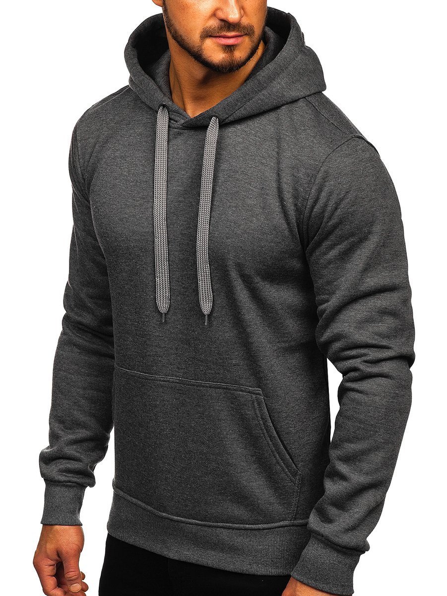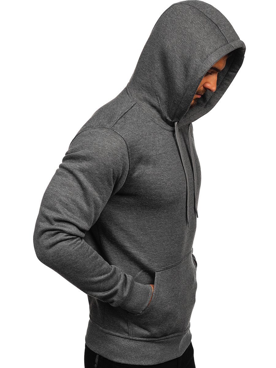 Great anthracite men's hoodie 2009 from the Bolf collection. It has an adjustable hood and a practical kangaroo pocket at the front. The sport look is provided by the straight design. There is a drawstring-adjustable waist and bottom. It is made of soft, smooth sweatshirt fabric in a uniform color. This model is distinguished by rich colors, it can be found in more than twenty color variants, thanks to which it easily fits into many outfits. Wear it all year long. On many occasions. Shopping? Relax? Even for a spontaneous date, it will be appropriate. The product is perfect for everyday wear, it is a must-have item in any stylish men's wardrobe. The stylish colour really boosts up the outfit. It works well with jeans, cargo trousers or joggers. Match it with sweatpants or a lightweight jacket. Wear it to the gym or on an outdoor workout. This model is often chosen by buyers. Check out this model in the reviews of influencers and IG. It attracts with great workmanship and a good price compared to the competition. The sweatshirt also has its counterpart in the women's version, which also breaks popularity records.
