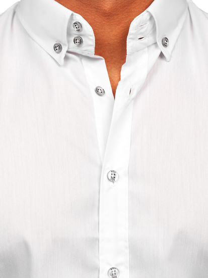 Elegant white men's shirt from the Bolf collection - a fine versatile offer. It nicely underlines the silhouette and visually adds style. The presented slim fit model is equipped with casual features, such as a button down collar.