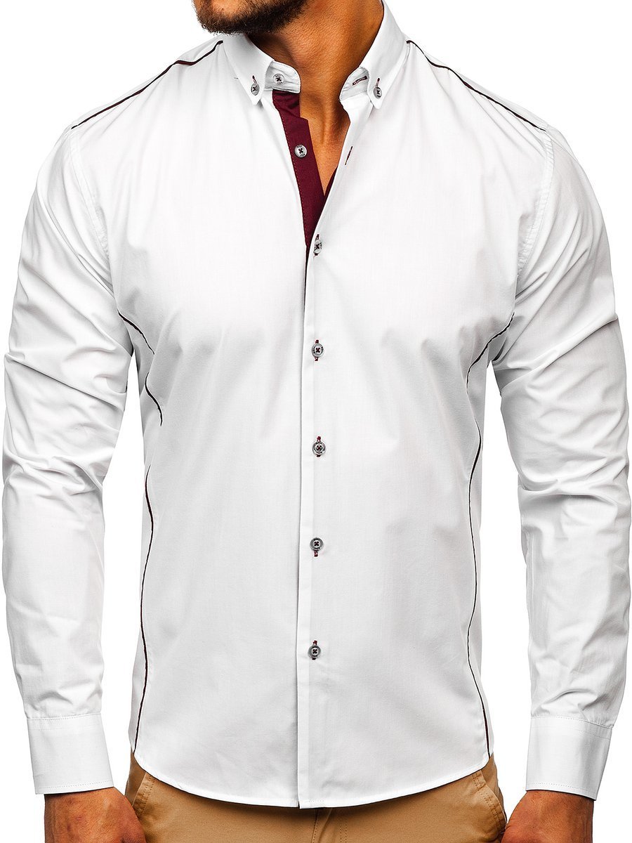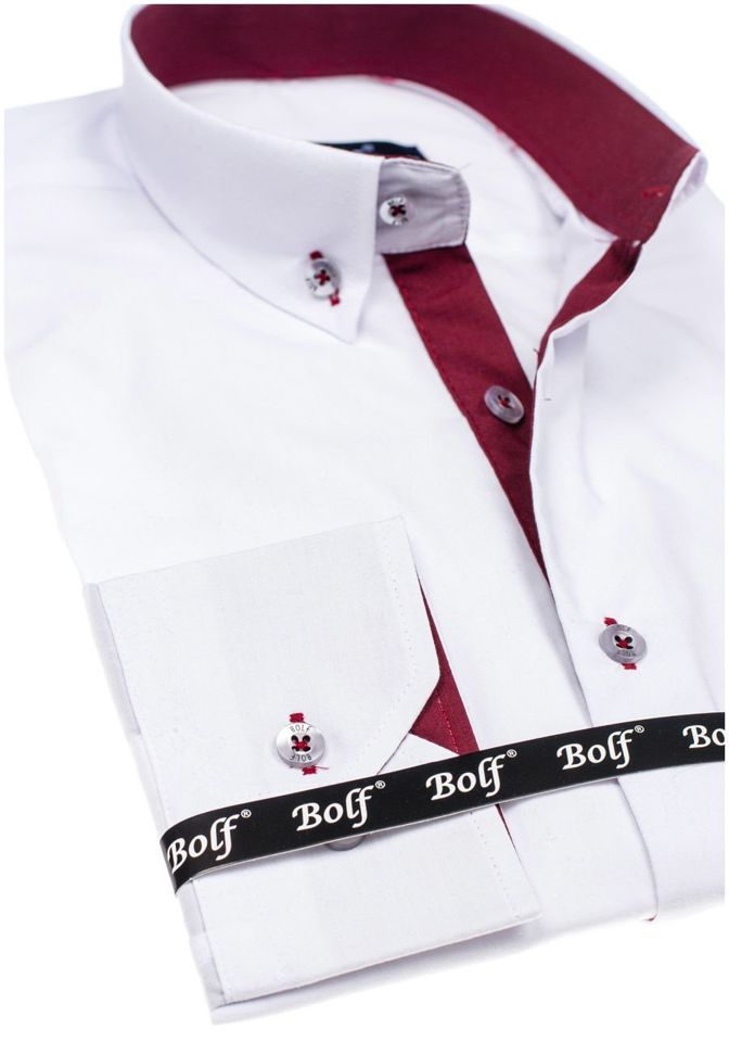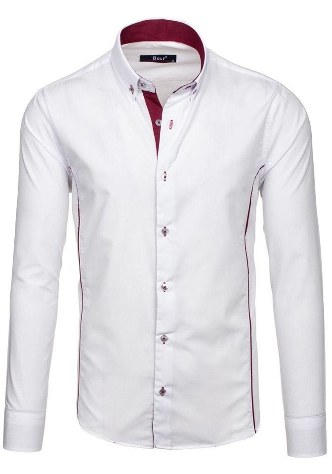 Stylish white and claret men's shirts from Bolf. It's a slim fit model that slims the silhouette and provides a great look. The white and maroon men's shirt has a neat button down collar. It is suitable to various stylings. Feel free to match it also with a blazer, jeans or a leather jacket.