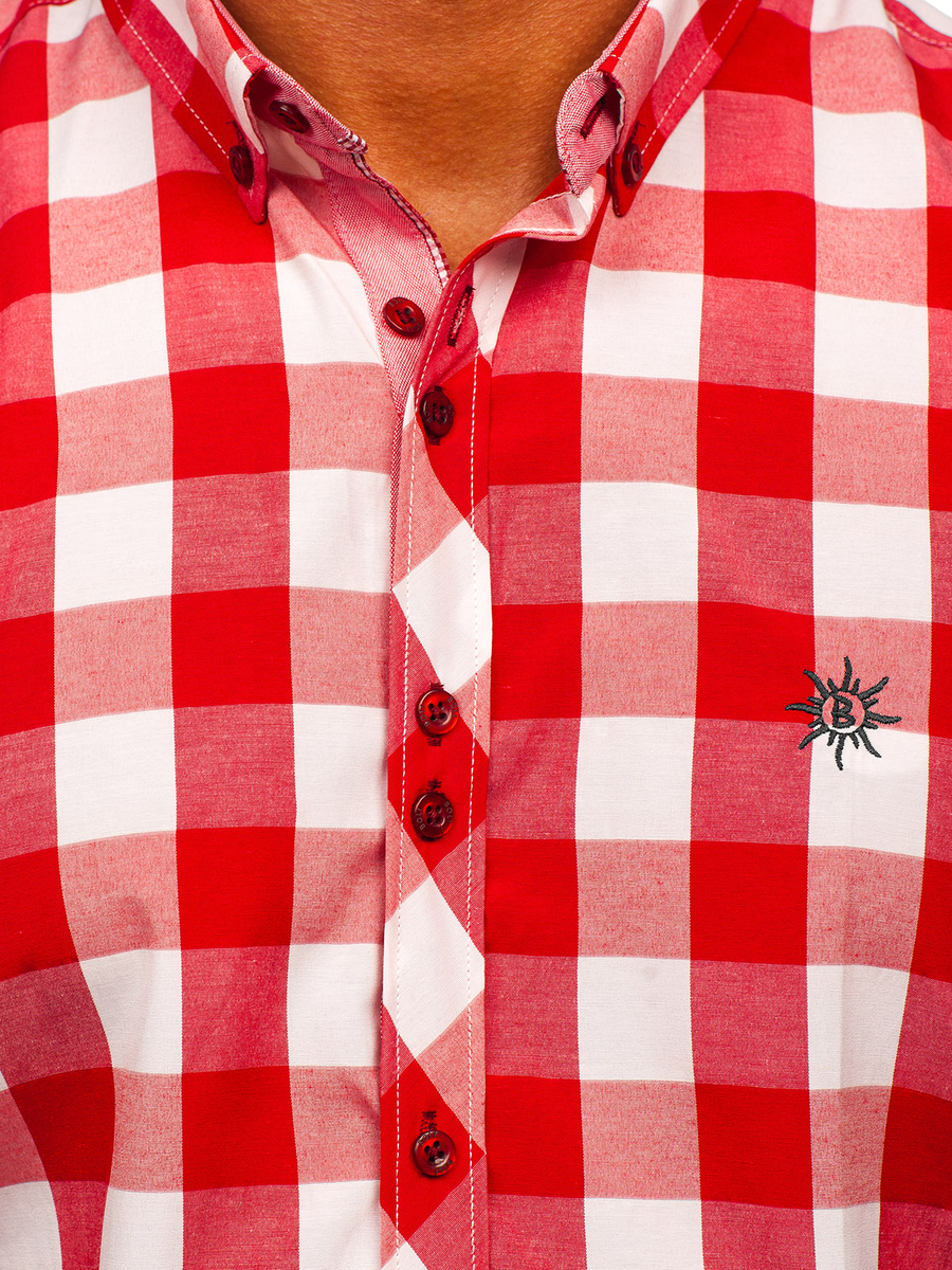 Comfortable red men's short sleeve shirt from the Bolf collection. There is a button down collar, a round bottom and a nice fastening. The presented model is slim fit and is the perfect choice on hot days. Wear it with jeans, chinos, shorts or a cardigan.