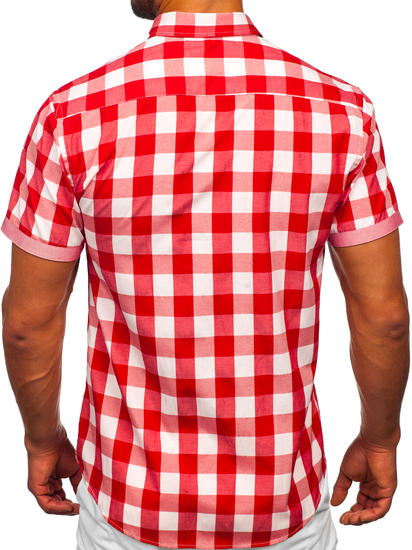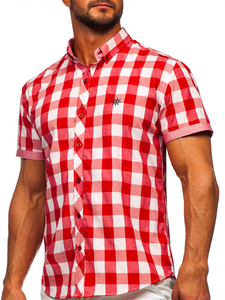 Customer feedback Men's Short Sleeve Checkered Shirt Red Bolf 6522