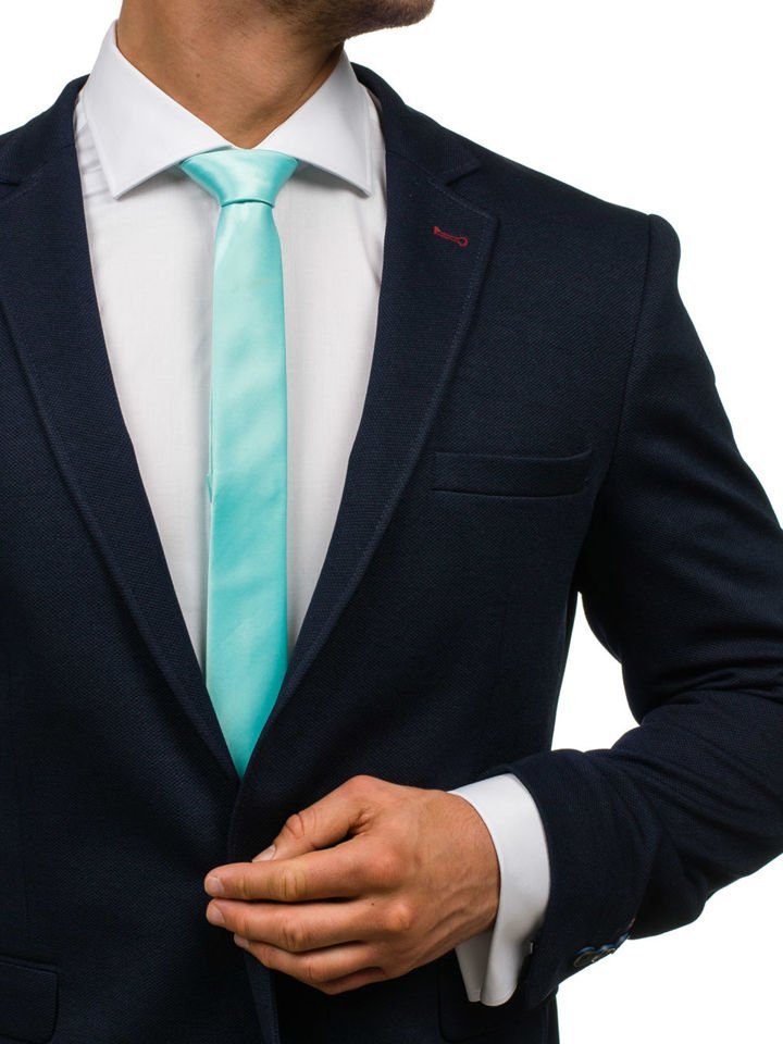 An outfit consisting of a suit or a blazer doesn't have to be boring. The tie gives it special character. Fine elegant mint men's tie from the Bolf collection - it fits to various collars. The style will be additionally enhanced by a pocket square with a mint accent.