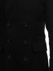 Exceptional black men's warm winter coat 1048 from the Bolf collection. It has got a button fastening and is double-breasted. There are two outside snap pockets with a flap and an inside button pocket. It's stylish and well-fitted. There is a reverse collar. The intensive colour works well in various stylings.The presented model can be easily used on many occasions. Feel free to wear it with jeans or chinos and a sweater or a long sleeve top and a shirt.