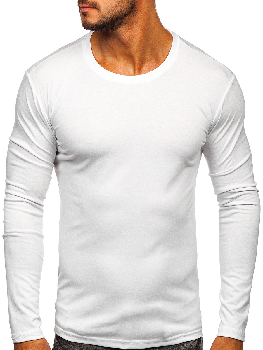 Perfect white long-sleeved shirt from Bolf. It's a plain and basic well-fitted model made from a very soft fabric. This white men's longsleeve can be used in casual stylings. Match it up with joggers, chinos or joggers.