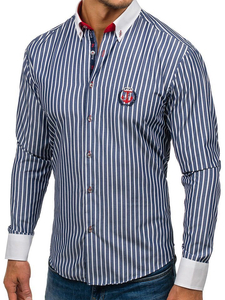 Customer feedback Men's Striped Long Sleeve Shirt Navy Blue Bolf 1771