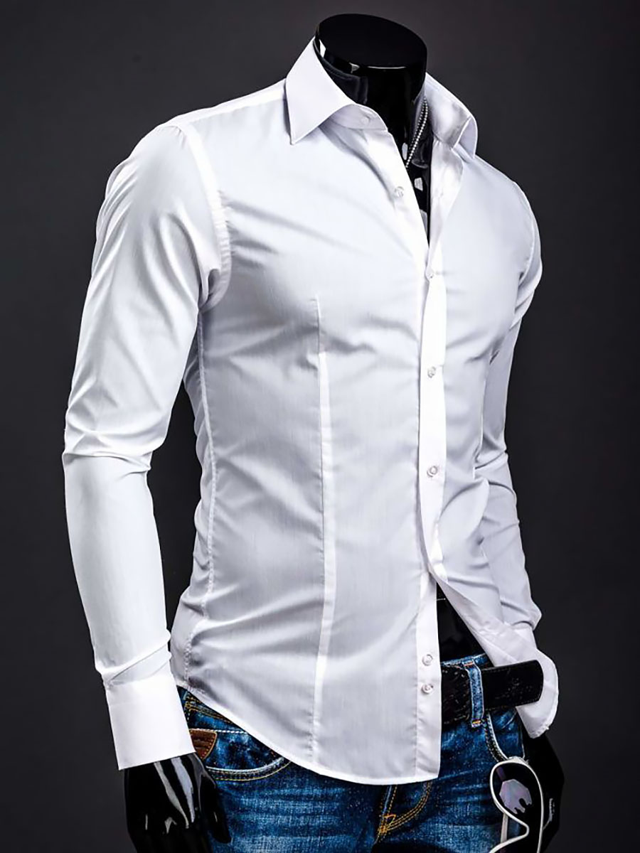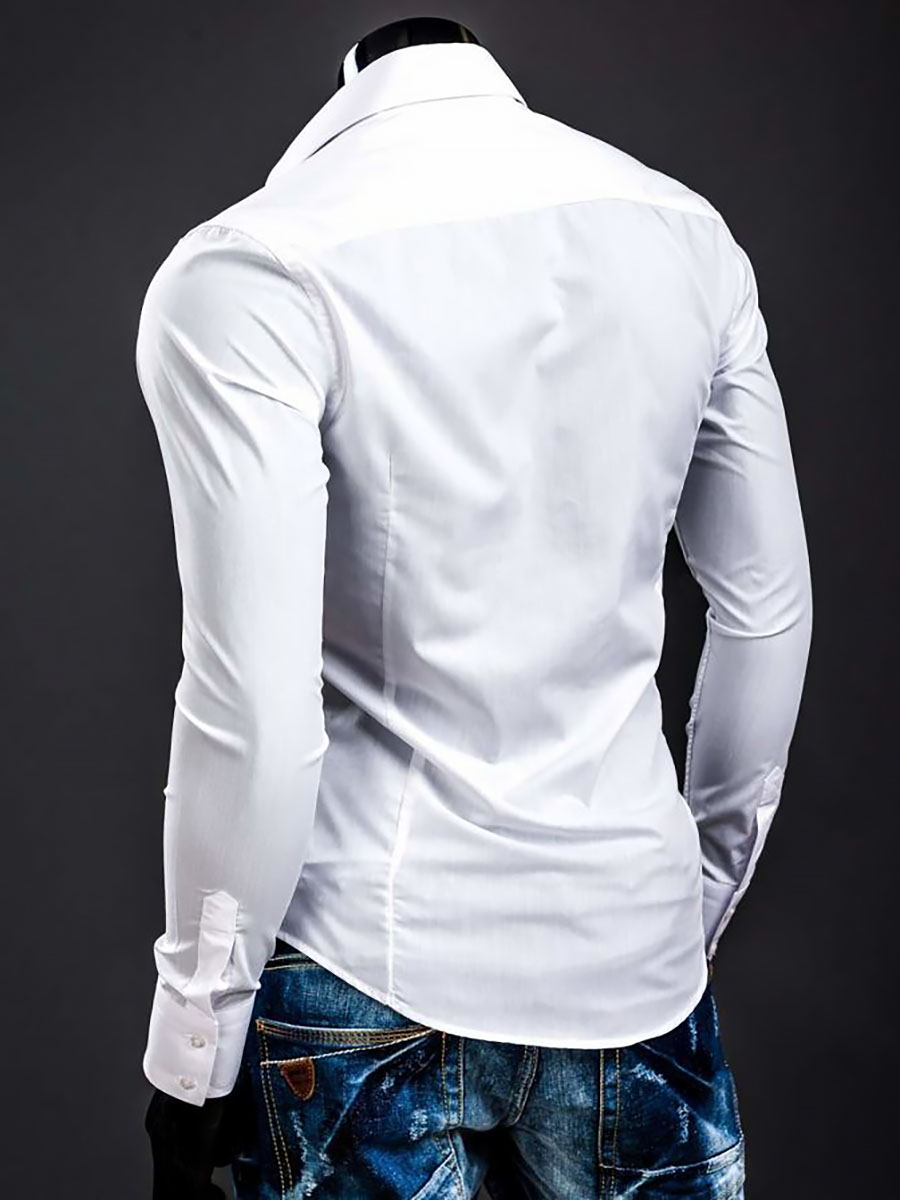 Elegant white men's long sleeve shirt 1703A from the Bolf collection. The presented model comes in different colours. Plain men's shirts are recommended for fans of minimalism and classic elegance in fashion. It provides great comfort and fitting. A definite must-have in the wardrobe of a conscious businessman. The design is straight and fits to various stylings. Shirt with a slim fit cut, buttoned, has a practical rounded hem. The sleeves are finished with wide, adjustable cuffs that are fastened with one button. It has a classic collar with short lapels.