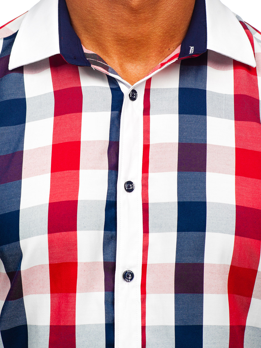 Impressive red men's checkered shirt from the Bolf collection. Light, fitted to the figure, incredibly comfortable. The presented slim fit short-sleeved shirt is a must-have. A must-have for a cool outfit with shorts, chinos and slip-ons or loafers.