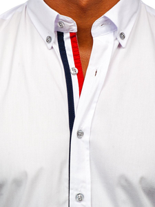 Elegant men's slim fit shirt with a button down collar from the Bolf collection. It has got a classic colour and round bottom. The presented model is well-fitted and works well in outfits with a blazer, chinos and a tie. It's perfect for everyday use and suitable for special occasions.