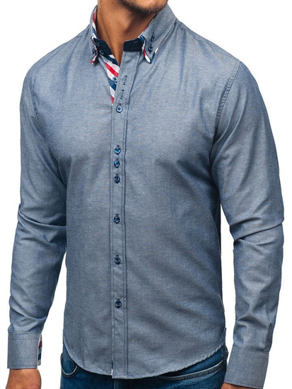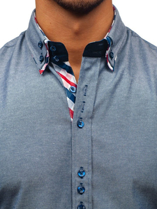 Very comfortable men's slim fit shirt from the Bolf collection with a double button down collar. It has got a nice colour, round bottom and a double collar with a decorative insert. The presented model is well-fitted and works well in outfits with a blazer, chinos or a leather jacket. It's perfect for everyday use and suitable for special occasions.