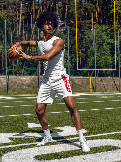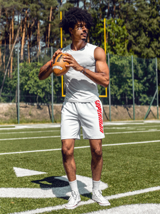 Classic plain white tank top 99001 from the Bolf collection. The presented model comes in many colours. It is made of a soft high-quality breathable material. It's perfectly fitted and underlines the silhouette. It has got a crew neckline with an elastic trim. It's basic and fits to every styling.It's a must have in the wardrobe of every man. It works well with jeans, cargo trousers or joggers. Wear it also with a zip hoodie or a bomber jacket.