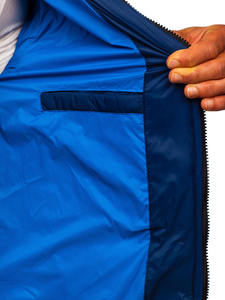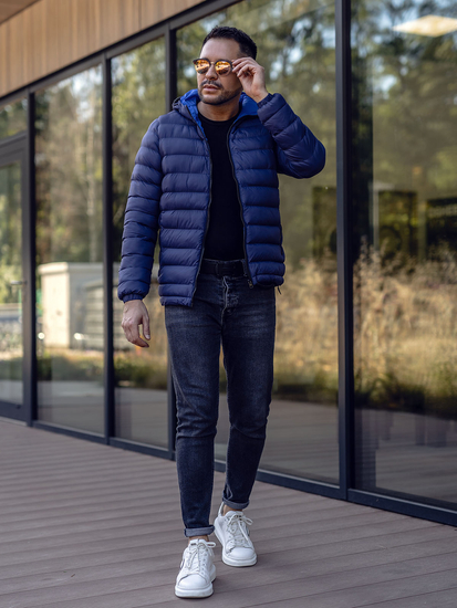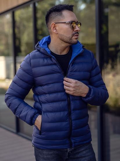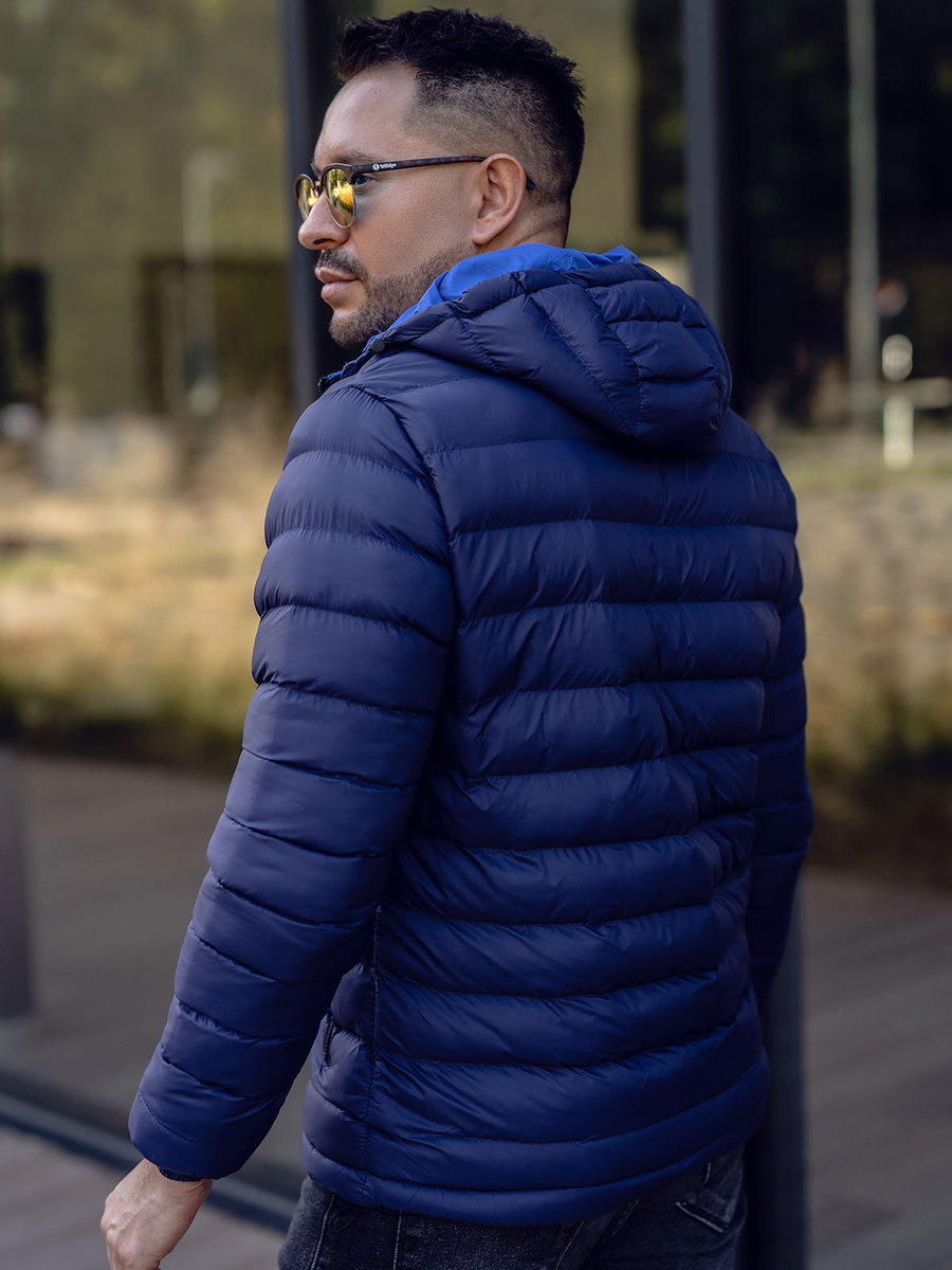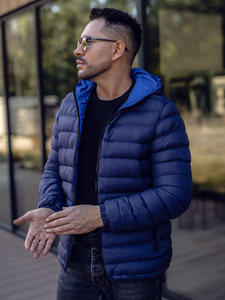 Practical navy blue quilted lightweight jacket from the Bolf collection. It provides a comfortable fit, protects from wind and cold, has got an adjustable hood and two zip pockets. The presented model is suitable to various stylings. Wear it with jeans, a sweatshirt or a T-shirt.