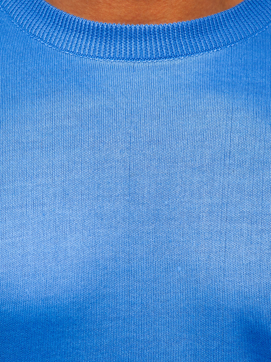 Blue men's jumper GFC01. It's an overhead type, has got ribbed bottom and sleeves. This sweater has got a classic cut with eye-catching stitchings. The fabric is soft and pleasant in touch providing great fitting.