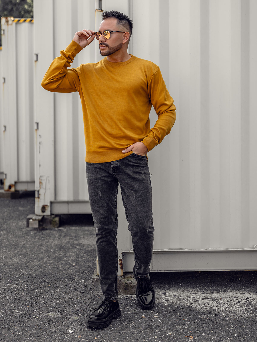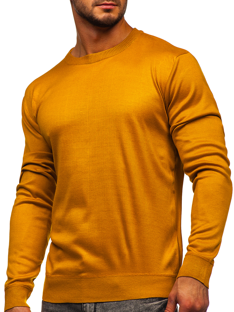 Camel men's jumper GFC01. It's an overhead type, has got ribbed bottom and sleeves. This sweater has got a classic cut with eye-catching stitchings. The fabric is soft and pleasant in touch providing great fitting.