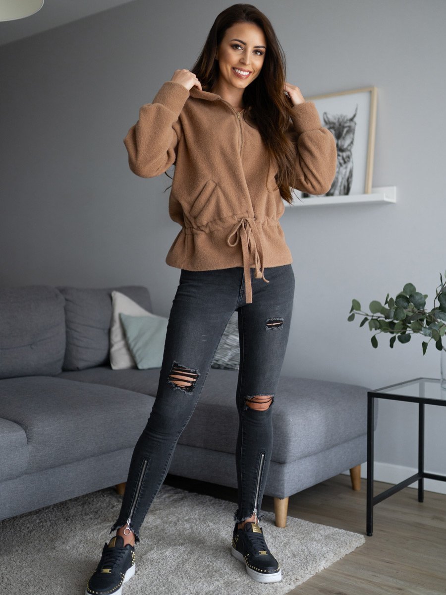 Practical women's jacket with hood 9320 from the Bolf collection. It was designed for women who want to look fashionable and feel comfortable regardless of the weather. The jacket is made of high-quality materials that ensure durability and protection against wind and rain. Its short cut gives it a modern look and perfectly emphasizes the figure. The jacket is very functional, it has numerous pockets where you can store small items, such as keys or a phone. It will match a sweater and jeans, as well as a dress.