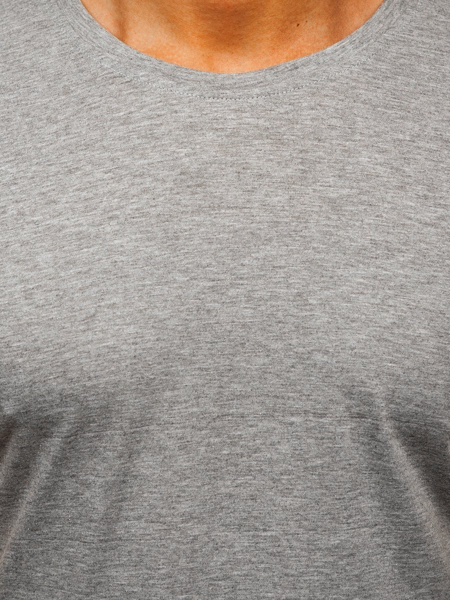 Classic dark grey T-shirt 2005 from the Bolf collection. It comes in many different colours. It's perfectly fitted and underlines the silhouette. It has got a crew neckline with an elastic trim. It's basic and fits to every styling.The presented model is the perfect casual offer. The stylish colour really boosts up the outfit. It works well with jeans, cargo trousers or joggers. Wear it also with a zip hoodie, a leather jacket or a bomber jacket.