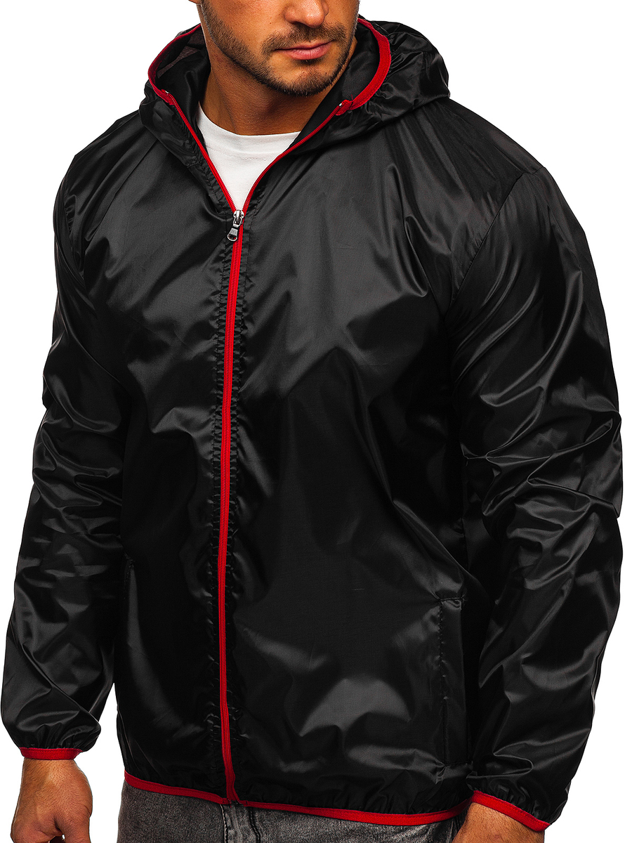 Universal black men's lightweight jacket 5060 from the Bolf collection. It provides great protection against wind and rain. It is made of high-quality 100% polyester. The presented model has got an adjustable hood and two outside pockets. The sleeves are ribbed with an elastic trim.