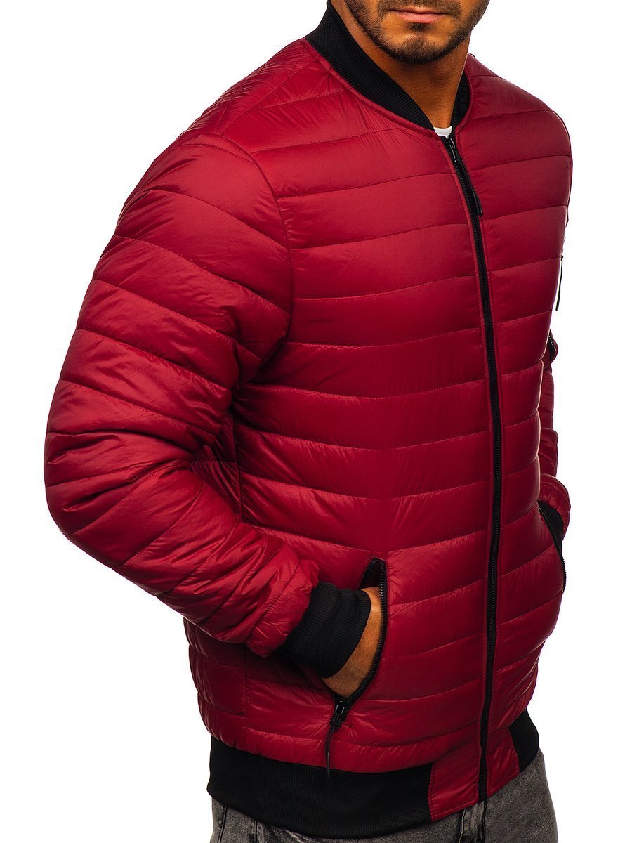Claret men's lightweight bomber jacket MY-02 from the Bolf collection. It is equipped with zip fastening. The presented model should be worn in casual and smart casual stylings. There is a stand up collar. It has got two zip pockets and an additional one on the sleeve. The sleeves and bottom are contrasting and elasticated. It's made of high-quality materials and will be a reliable companion for many years. It fits into the newest trends and is very soft. The presented model works great in early spring and late autumn. The colour allows to match it with various clothes. It is designed for those who value comfort and style. The bomber jacket is carefully-designed and provides a comfortable fit. The simple cut makes it fit into casual and urban stylings. Match it with jeans, a long sleeve top, joggers and a T-shirt or chinos and a shirt. It goes well also with a hoodie, a jumper or a turtleneck sweater. The bomber jacket MY-01 is a bestseller in Bolf shop. It's popularity grwos higher and higher. It's universal and affordable. Feel free to wear it to work, on shopping or casual events. You can take it on various occasions. It's lightweight, soft and takes little space.