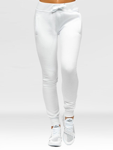 Classic white women's slim fit sweatpants CK-01 from the Bolf collection. The presented model comes in different colours. This pair has got a waist regulation and two front pockets. The sport look is provided by the straight cut and ribbed legs. The product was made of a soft and pleasant in touch fabric. It fits well into casual and sport stylings. Feel free to match them with a zip sweatshirt, a T-shirt, a lightweight jacket or a softshell jacket. You can easily create an original sport and casual look. It is suitable to use on various occasions.