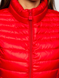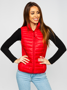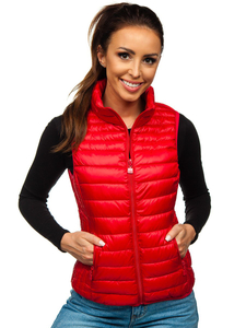 Perfect red women's quilted hooded gilet B2705 from the Bolf collection. Quilting on the entire surface gives it a sporty character. It is fastened with a zipper and has two outer pockets with zippers that give it a practical character. It is made of 100% nylon, which makes it extremely comfortable. This classic-cut vest will be a great alternative to a jacket in the fall and spring seasons. The vest can be used as the basis for many fashionable styles. It will look great in combination with sweatpants creating a sporty, loose outfit. It works great with jeans and a T-shirt.
