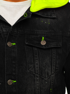 Perfect black men's denim jacket with a hood 1-2 from the Bolf collection. Made of high-quality materials, it guarantees resistance and durability. Thanks to the appropriate cut and fit, the jacket ensures comfort and freedom of movement. Perfect for any weather, it protects against wind and light rain thanks to the hood. It will suit both everyday, casual and sports styles. Pair it with a T-shirt and joggers.