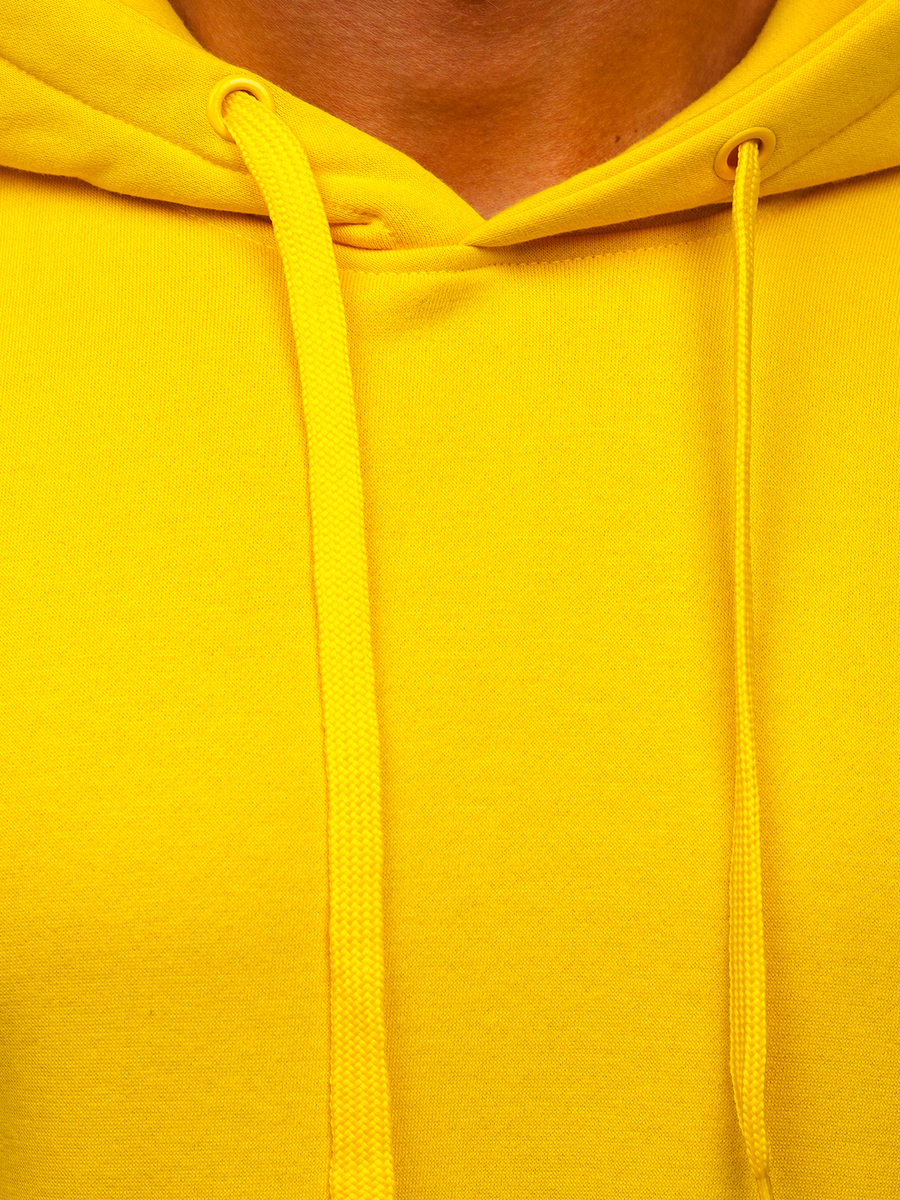 Great light yellow men's hoodie 2009 from the Bolf collection. It has an adjustable hood and a practical kangaroo pocket at the front. The sport look is provided by the straight design. There is a drawstring-adjustable waist and bottom. It is made of soft, smooth sweatshirt fabric in a uniform color. This model is distinguished by rich colors, it can be found in more than twenty color variants, thanks to which it easily fits into many outfits. Wear it all year long. On many occasions. Shopping? Relax? Even for a spontaneous date, it will be appropriate. The product is perfect for everyday wear, it is a must-have item in any stylish men's wardrobe. The stylish colour really boosts up the outfit. It works well with jeans, cargo trousers or joggers. Match it with sweatpants or a lightweight jacket. Wear it to the gym or on an outdoor workout. This model is often chosen by buyers. Check out this model in the reviews of influencers and IG. It attracts with great workmanship and a good price compared to the competition. The sweatshirt also has its counterpart in the women's version, which also breaks popularity records.