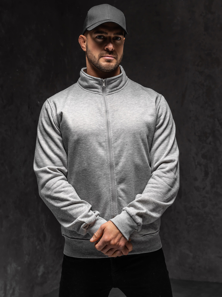 Superb grey men's zip sweatshirt B002 from the Bolf collection. It is equipped with zip fastening. The presented model should be worn in casual and smart casual stylings. There is a stand up collar. It has no pockets. The sleeves and bottom are ribbed. It's made of high-quality materials and will be a reliable companion for many years. It fits into the newest trends and is very soft. A sports-style sweatshirt will work on colder days, it can be put on a thin T-shirt or long sleeve shirt. It is designed for those who value comfort and style. It is comfortable, light, well sewn, and fits perfectly on the male body. The simple cut provides great comfort in casual and urban stylings. Match it with jeans, a long sleeve top, joggers and a T-shirt or chinos and a shirt. The classic, simple, zipped sweatshirt has a constant group of fans in the Bolf online store. Lots of men like it as the jacket they wear every day. It's universal and affordable. Feel free to wear it to work, on shopping or casual events. You can take it on various occasions. It's lightweight, soft and takes little space. Wear it outdoors and indoors. It's worth trying it out while jogging.