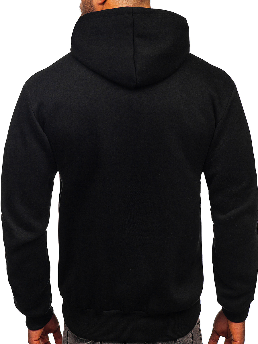 Perfect black men's sweatshirt 6198 from the Bolf collection. The neckline, sleeves and bottom of the sweatshirt are finished with a black welt, thanks to which it fits well to the body. It is pleasant and soft to the touch and airy. Made of 70% cotton and 30% polyester for flexibility and durability. This expressive sweatshirt will go great with jeans and in a more sporty version with joggers or sweatpants.