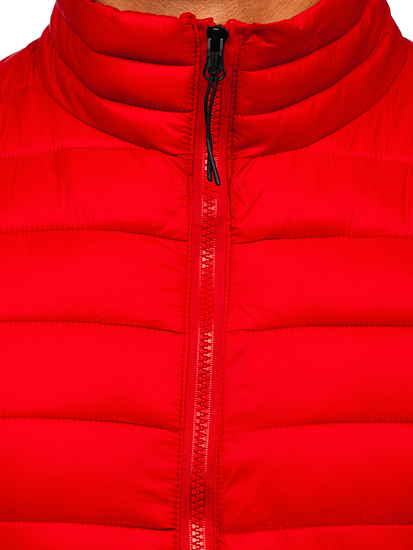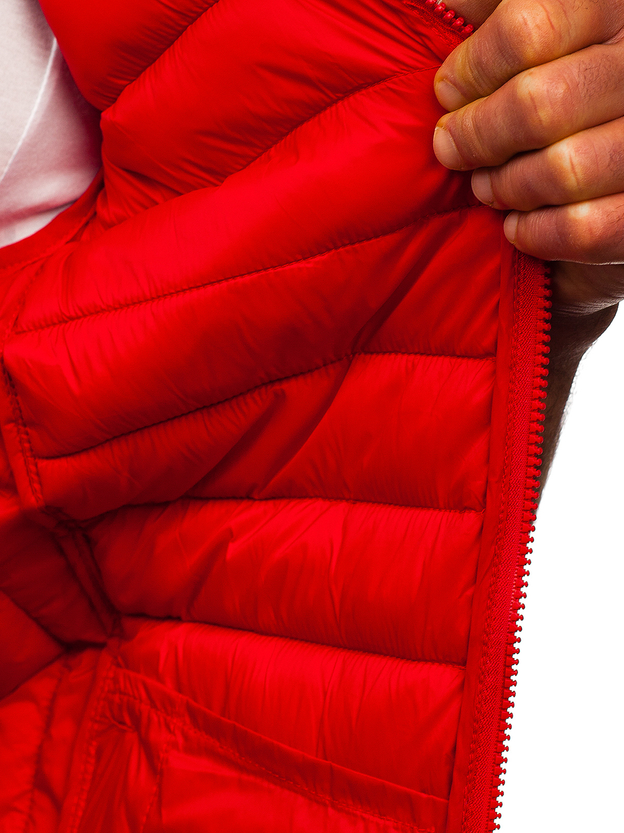 Superb red men's quilted gilet HDL88001 from the Bolf collection. This classic-cut vest will be a great alternative to a jacket in the fall season. There are quiltings all over adding sport style. The product has a stand-up collar, which will effectively protect even against the coldest and wind. It is equipped with a zipper. The bottom of the vest and the armholes are finished with an elastic trim in the same color. The vest has two very practical outer pockets closed with a zipper, so that no valuable items will fall out. A vest of this type is a must-have item in the wardrobe of every fashionable man. Due to its versatility and price-quality ratio, it is an ideal product. The vest is a perfect Christmas or birthday gift. It is a perfect choice for autumn and winter days, it provides protection against cold and wind. Thanks to it, you will be able to spend long hours outside and enjoy time spent outdoors with your loved ones. Flexible material makes the vest suitable for even the most demanding exercises and work. The product is aimed at men who want to look fashionable and feel comfortable. It will be useful when working in the garden, playing outdoor sports, or during an autumn walk for two. The vest is also available in other colors, so it can be matched to any other garment. The vest can be used as a basis for many fashionable stylings, it will successfully replace a lightweight jacket. Feel free to match it with sweatpants, jeans or joggers. Match it also with a long sleeve top, a sweatshirtor a T-shirt.