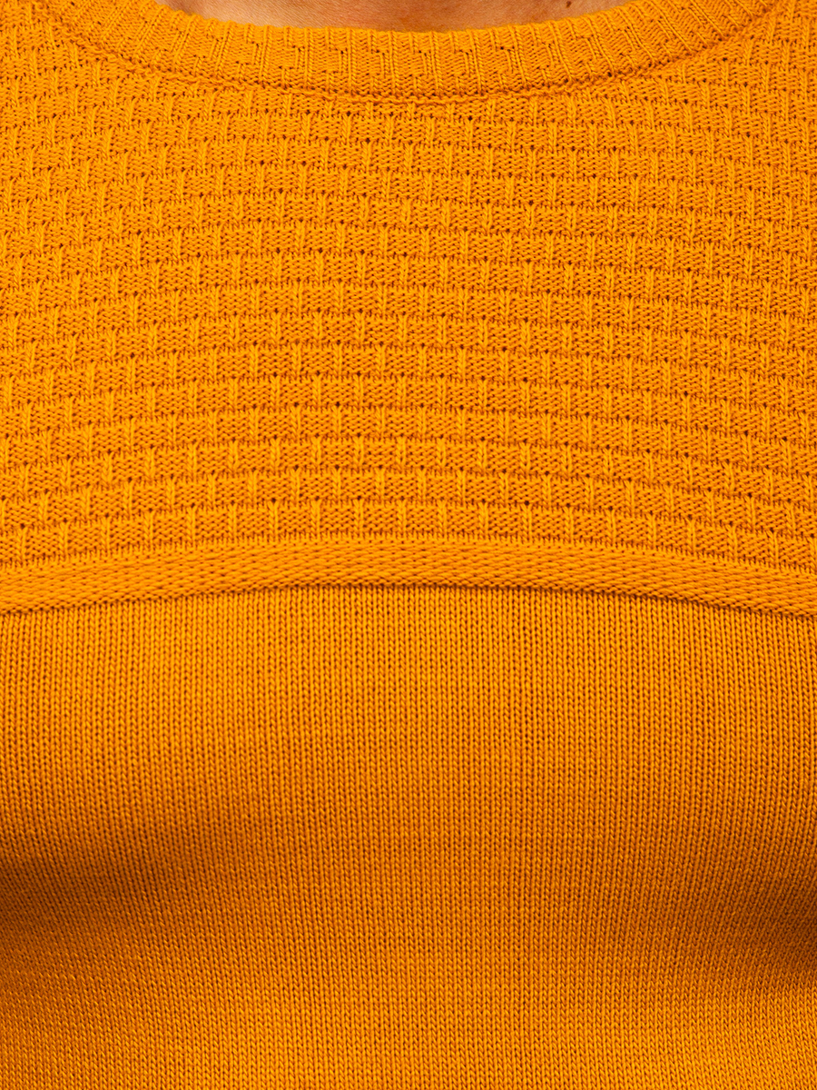 Must have camel men's jumper 4623 from the Bolf collection. A classic-cut sweater is universal and will help you create the perfect outfit. The product is tucked over the head and has a round neckline. The bottom, neckline and sleeves are finished with welts. The sweater is made of 70% acrylic and 30% wool, which makes it flexible and comfortable. It is intended for fans of everyday style. Perfect for a walk, meeting with friends or going out into the city. Create a perfect match with jeans and textile pants.