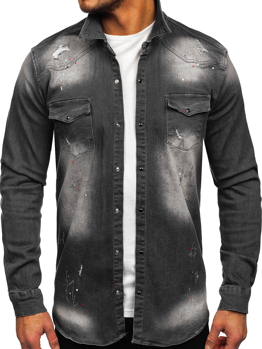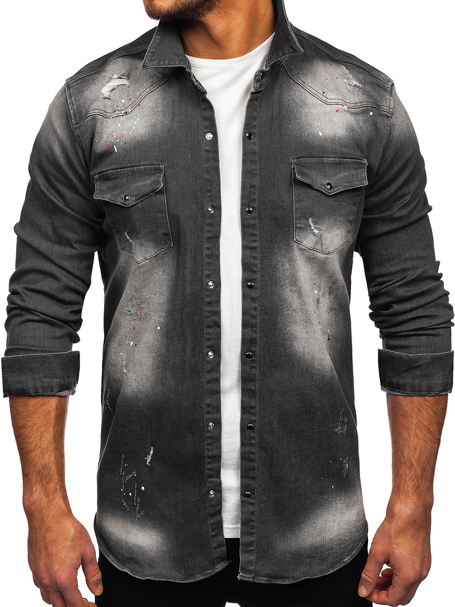 Customer feedback Men's Long Sleeve Denim Shirt Graphite Bolf R710
