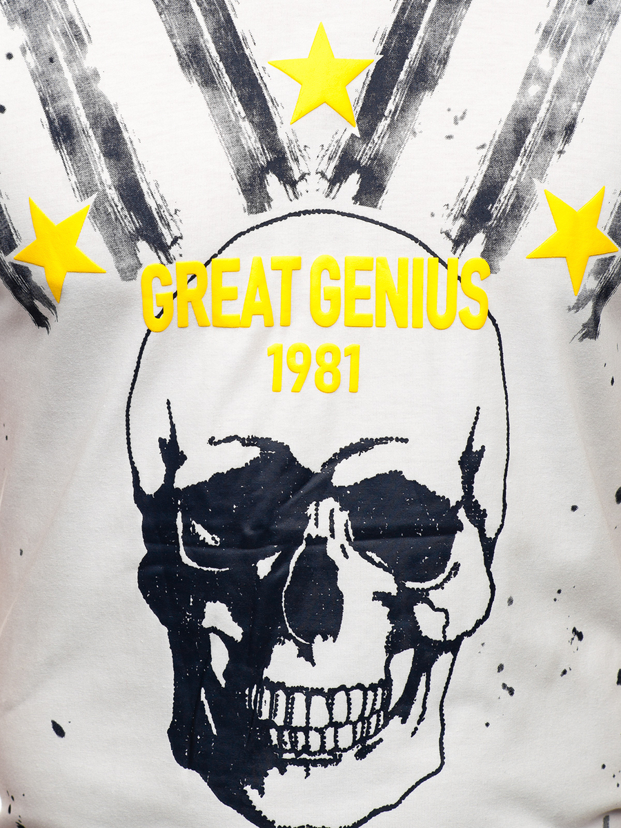 Must have white men's printed T-shirt Y70006 from the Bolf collection. Comfortable T-shirt with a round neckline will easily meet men's tastes. The product will work during a trip to the city, meeting friends or walking. The front has an original print that will catch the eye and make you stand out from the crowd. The t-shirt is made of flexible and pleasant to the touch material. Create a perfect match with jeans, joggers, cargo trousers or chinos.