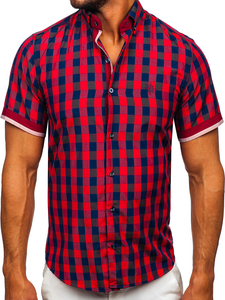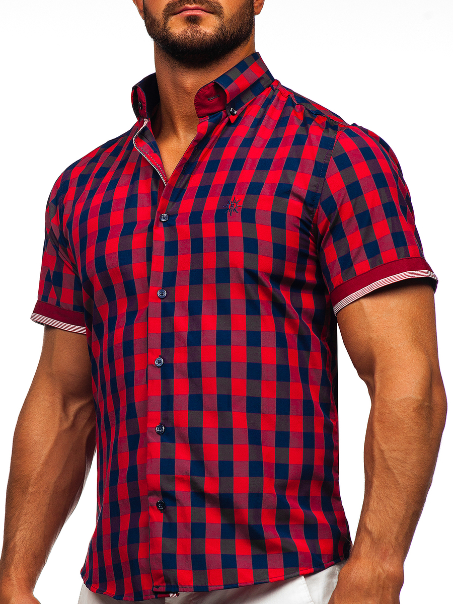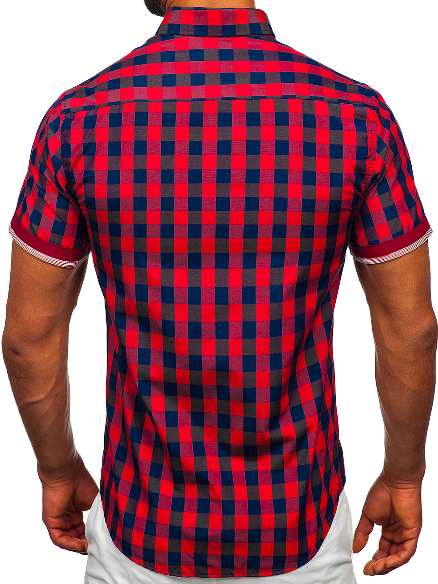 Customer feedback Men's Short Sleeve Checkered Shirt Claret Bolf 4508
