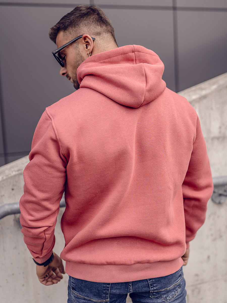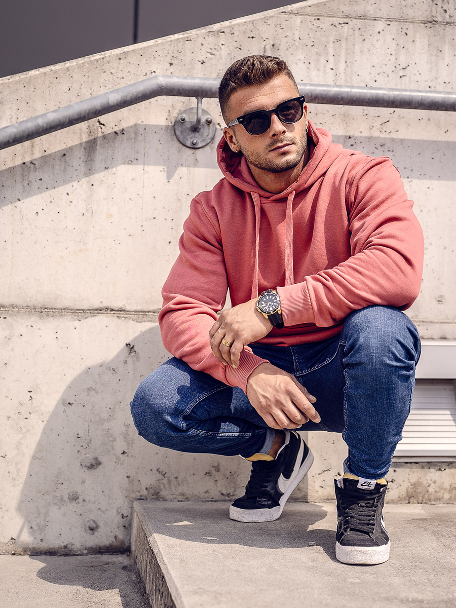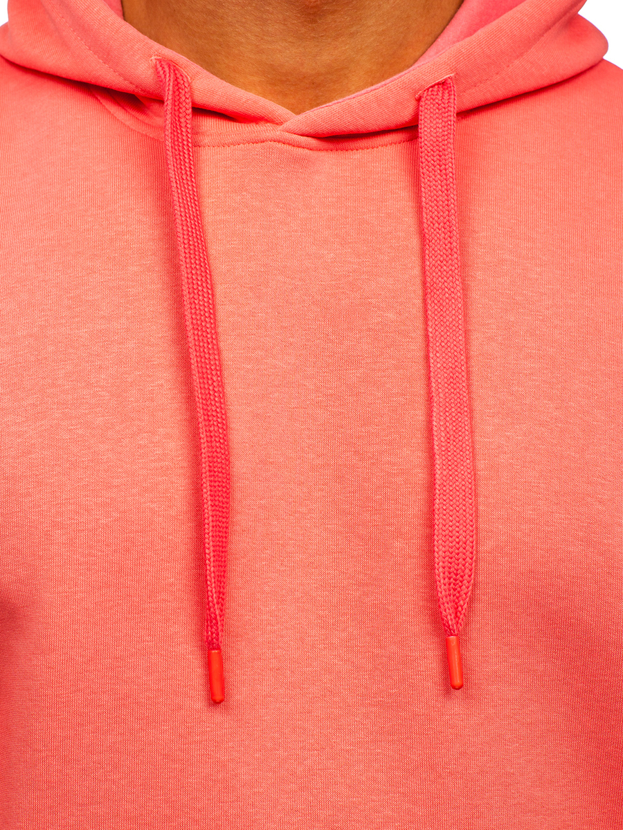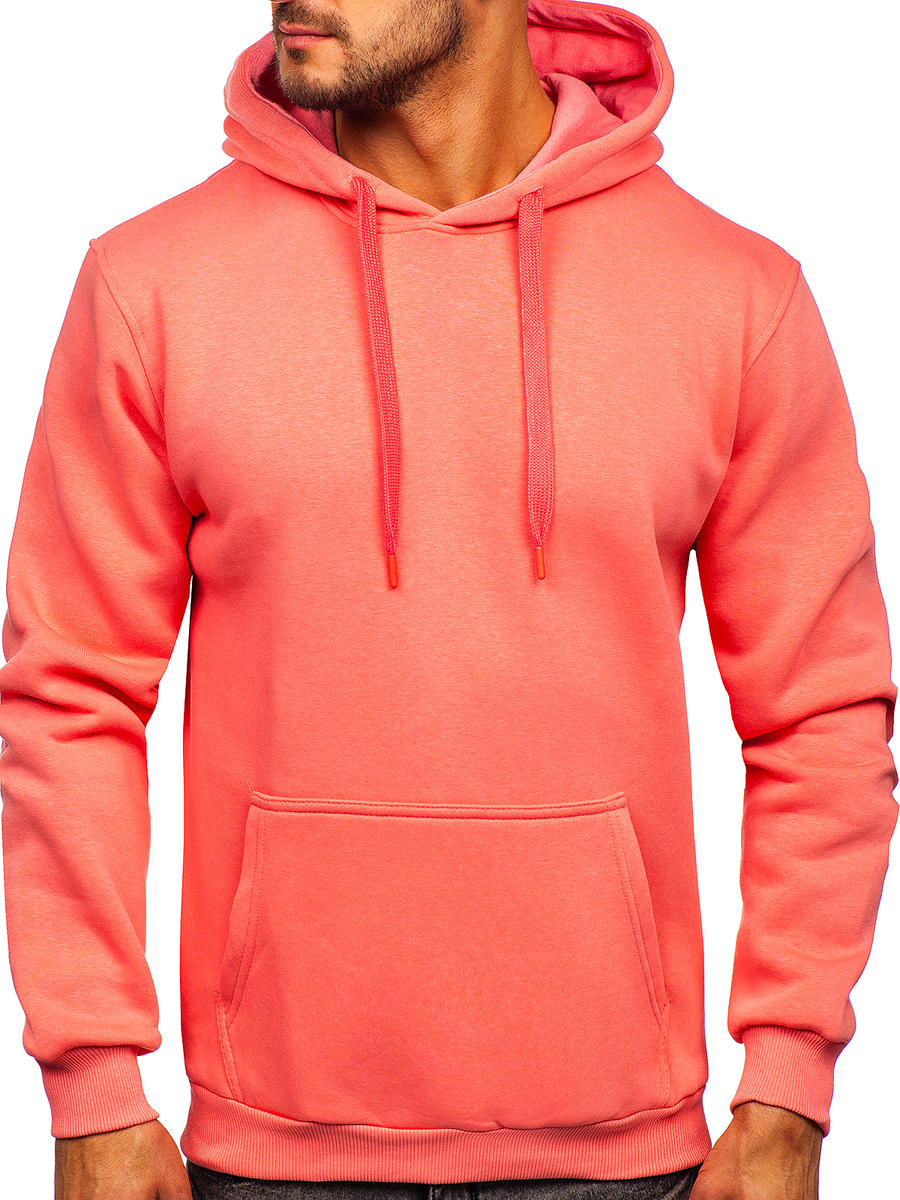 Great salmon men's hoodie 1004 from the Bolf collection. It has an adjustable hood and a practical kangaroo pocket at the front. The sport look is provided by the straight design. There is a drawstring-adjustable waist and bottom. It is made of soft, smooth sweatshirt fabric in a uniform color. This model is distinguished by rich colors, it can be found in more than twenty color variants, thanks to which it easily fits into many outfits. Wear it all year long. On many occasions. Shopping? Relax? Even for a spontaneous date, it will be appropriate. The product is perfect for everyday wear, it is a must-have item in any stylish men's wardrobe. The stylish colour really boosts up the outfit. It works well with jeans, cargo trousers or joggers. Match it with sweatpants or a lightweight jacket. Wear it to the gym or on an outdoor workout. This model is often chosen by buyers. Check out this model in the reviews of influencers and IG. It attracts with great workmanship and a good price compared to the competition. The sweatshirt also has its counterpart in the women's version, which also breaks popularity records.