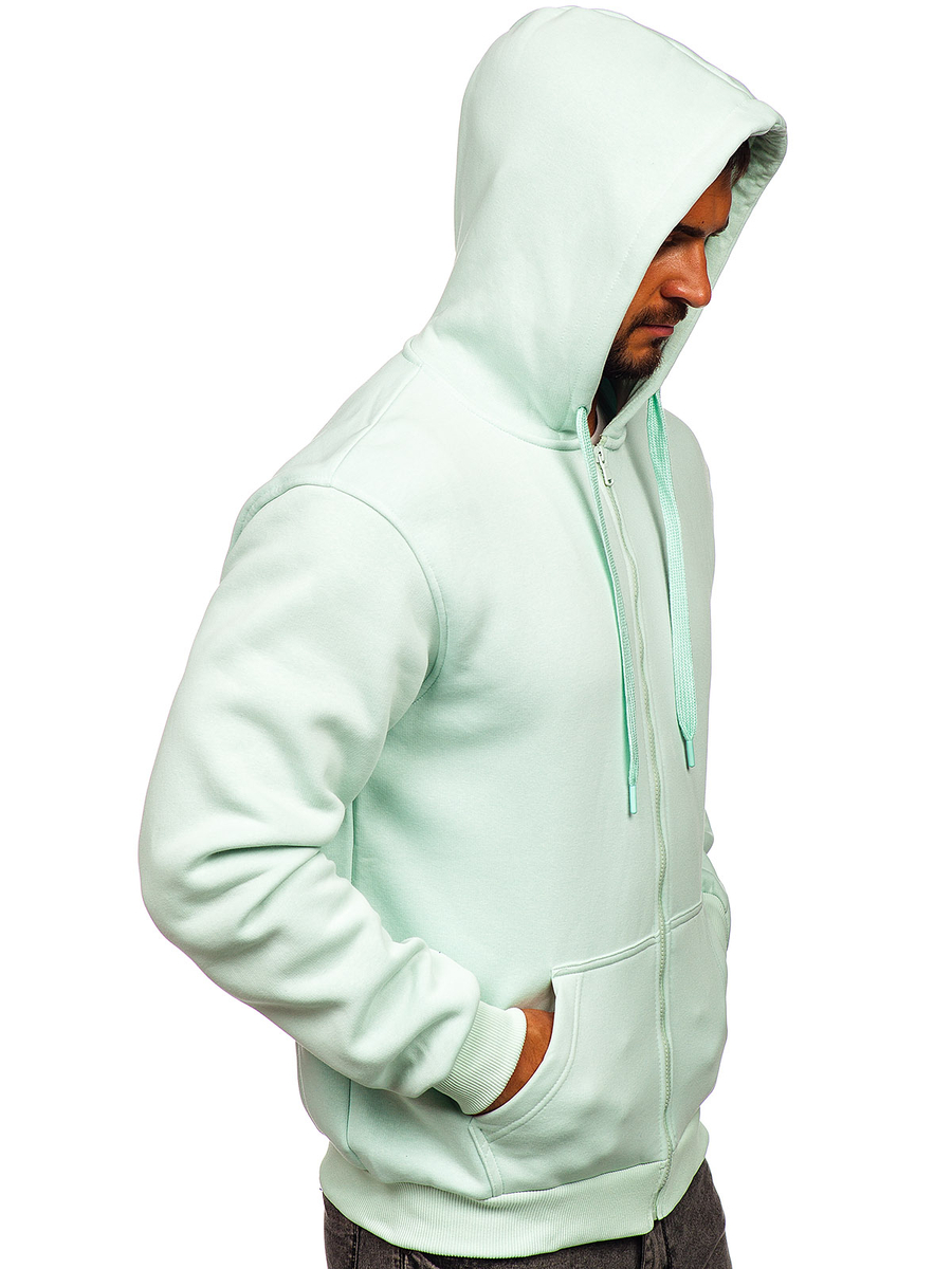 Light mint men's hoodie with a zipper 2008 from the Bolf collection. It's a classic design made of high-quality material. This model comes in different colours. It has got an adjustable hood and side pockets. The bottom and sleeves are elasticated. It is designed for those who value comfort and minimalistic style. It's very comfortable and practical. It's an absolute must have. The design is classic and fits to various stylings. It will surely meet your expectations regardless of the colour. It comes in many beautiful versions. Wear it all year long.