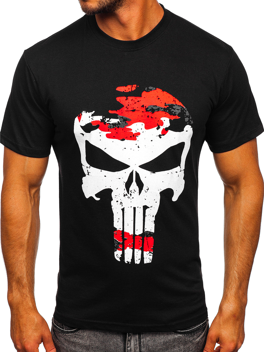 Cool black and red men's printed T-shirt 2098 from the Bolf collection. It has got a classic cut and crew neckline with elastic trim. The back is plain.