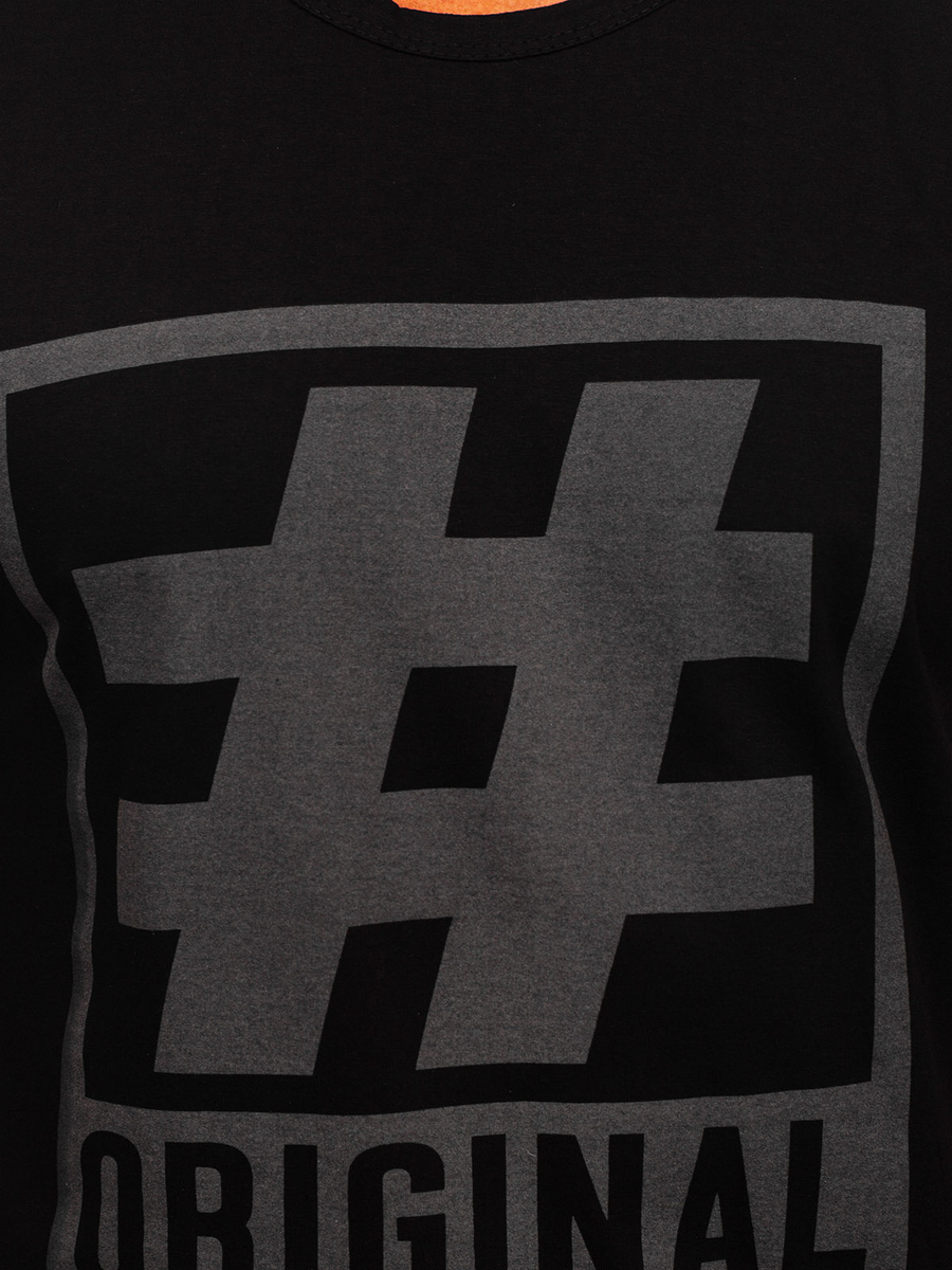 Unique black and graphite men's printed tank top 19802 from the Bolf collection. Made of high-quality materials, it is comfortable and comfortable to wear. The print on the front adds character and makes it stand out from other shirts. It is an excellent choice for hot days. It will suit everyday, urban and sports stylizations. You can wear it alone or combine it with a jacket or a sweater to create layered looks.