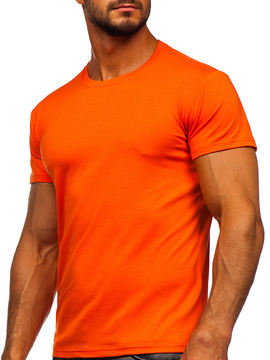 Classic orange T-shirt 2005 from the Bolf collection. It comes in many different colours. It's perfectly fitted and underlines the silhouette. It has got a crew neckline with an elastic trim. It's basic and fits to every styling.The presented model is the perfect casual offer. The stylish colour really boosts up the outfit. It works well with jeans, cargo trousers or joggers. Wear it also with a zip hoodie, a leather jacket or a bomber jacket.