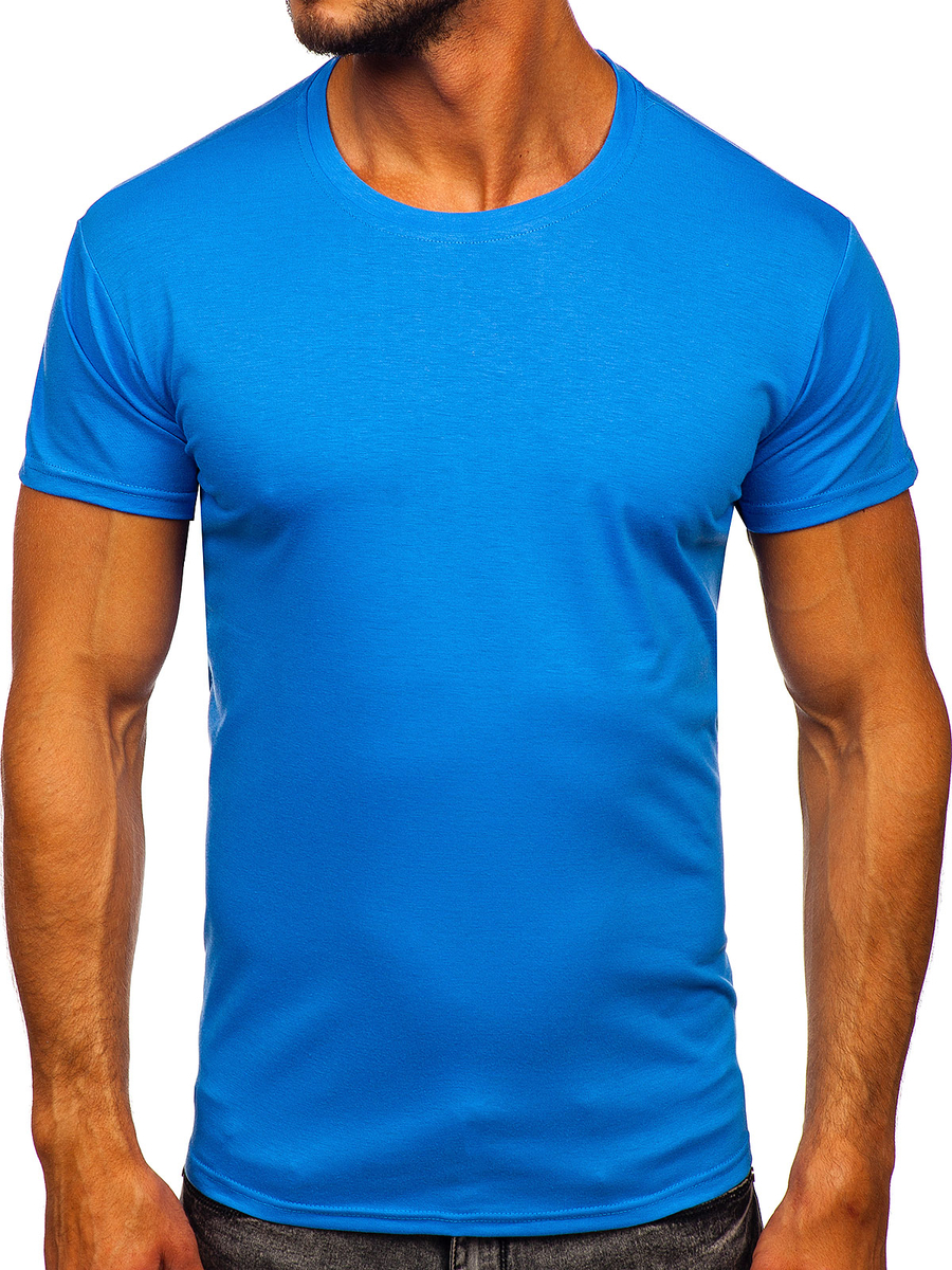 Classic light blue T-shirt 2005 from the Bolf collection. It comes in many different colours. It's perfectly fitted and underlines the silhouette. It has got a crew neckline with an elastic trim. It's basic and fits to every styling.The presented model is the perfect casual offer. The stylish colour really boosts up the outfit. It works well with jeans, cargo trousers or joggers. Wear it also with a zip hoodie, a leather jacket or a bomber jacket.