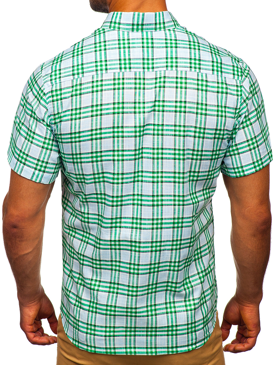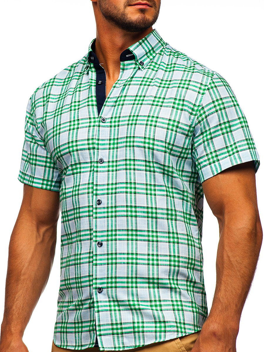 Customer feedback Men's Short Sleeve Checkered Shirt Green Bolf 201501