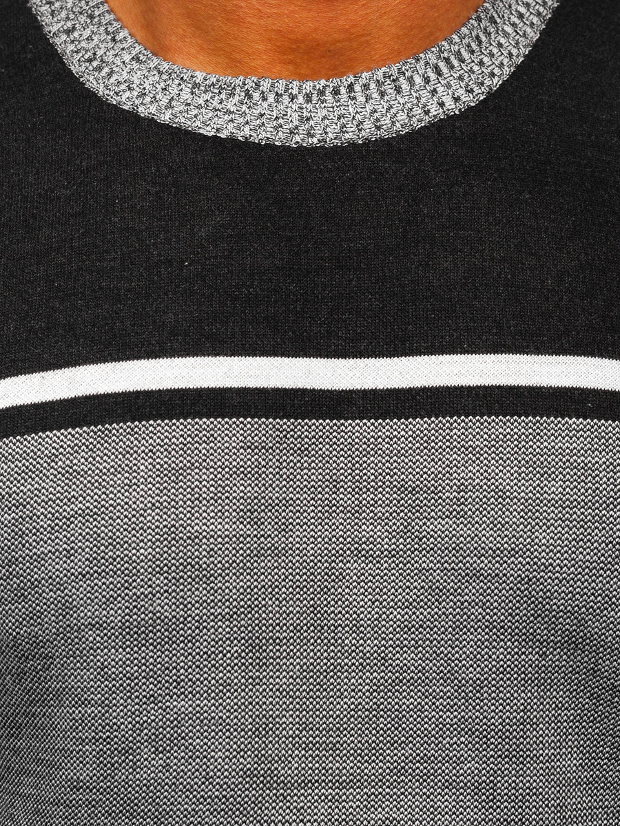 Classic graphite men's jumper 6300 from the Bolf collection. The product has a delicate, round neckline, which is finished with a welt. The ribbing is also finished at the bottom and sleeves, emphasizing the casual character. Thanks to this, the sweater fits perfectly to every figure. The fitted cut makes everyone look exceptionally advantageous in it. Fashionable stripes add character to it. The product is made of a delicate, pleasant to the touch fabric that fits perfectly on the body. The material is 65% wool, 30% acrylic and 5% elastane. Wear it to work, school, on a date, for a walk or meeting with friends - no matter what the occasion, you'll always look great. A classic sweater will perfectly match jeans and a leather jacket, creating the perfect outfit for a city trip. You can pair it with joggers and a sweatshirt for a looser look.