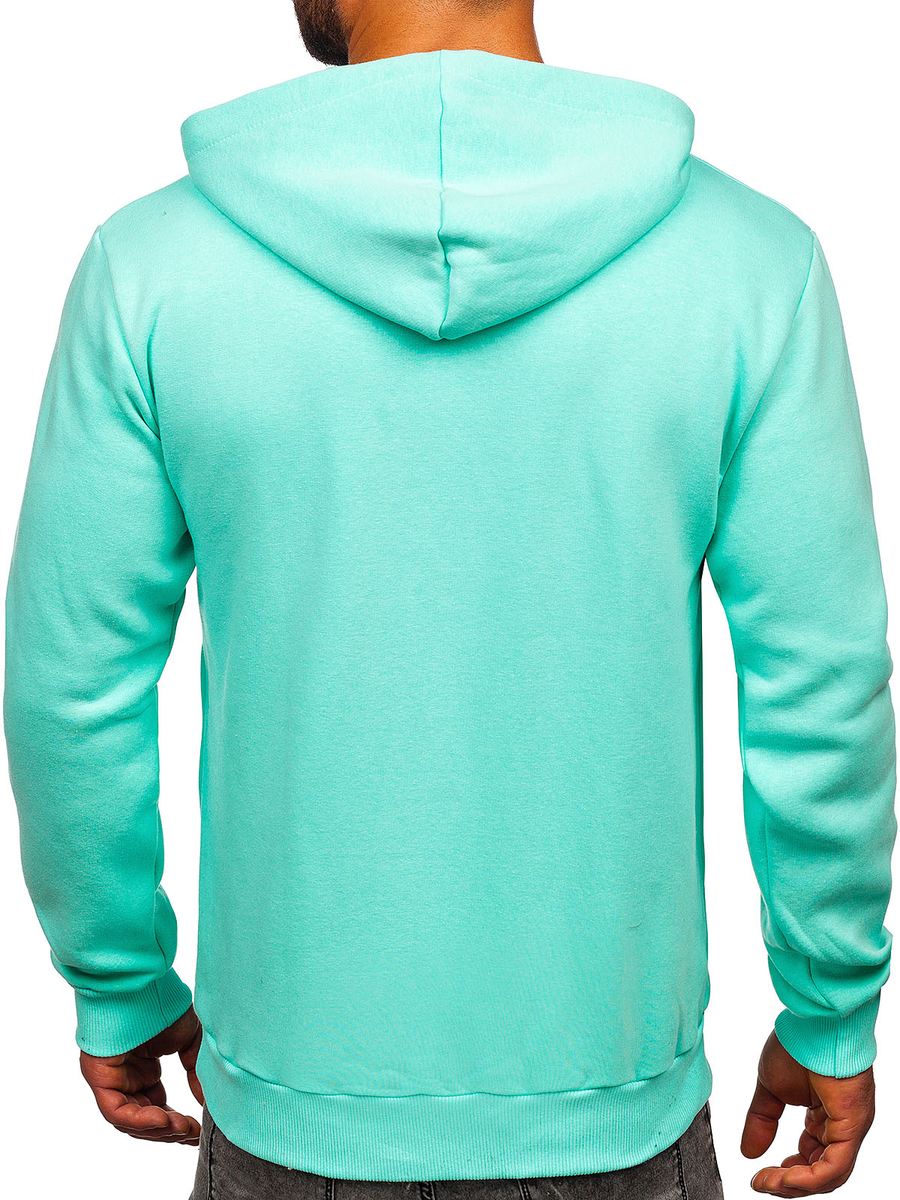 Eye-catching mint men's hoodie 06 from the Bolf collection. It is available in many colors, which gives a wide range of possibilities in creating everyday stylizations. A sweatshirt in a fashionable color is the basis of a good ourfit. It has a hood fastened with two snaps, which provides protection against wind and cold. The bottom and sleeves are finished with welts. A product of this type is a must have for fans of sports style. Provides comfort while walking, jogging or training. It is made of 70% cotton and 30% polyester, which makes it very pleasant to the touch. It will look great in combination with sweatpants creating a sporty, loose outfit. Jogger jeans will fit perfectly well. You can wear it on whatever you like: a long sleeve top, a sweatshirt or a T-shirt!